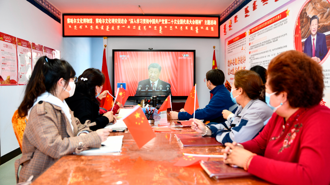 工作人员认真观看大会并积极讨论。大家一致认为,要全面贯彻好党的二十大精神,认真学习和深刻领会习近平总书记的报告,以党的二十大精神和总书记的报告为引领,指导开创察哈尔文化博物馆、察哈尔文化研究促进会工作新局面,并以更大的责任担当,认真履职,真抓实干,服务大局。
